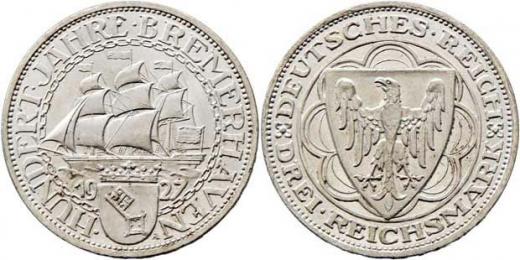 3 Marka 1927 A - Bremerhaven, KM.50, 14.902g, nep.hr., nep.rysky