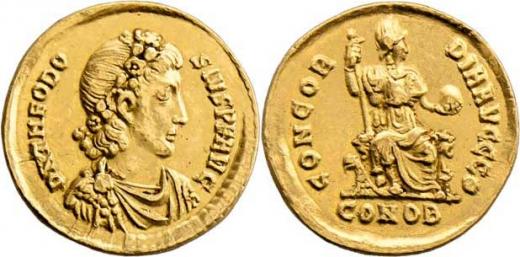 Solidus, Rv:"CONCORDIA.AVGGG.", sedící Concordia čelně drží žezlo a globus, S.4068, RIC.9.223.43b - Constantinopolis - ražba z let 378 -383, 4.496g RR!