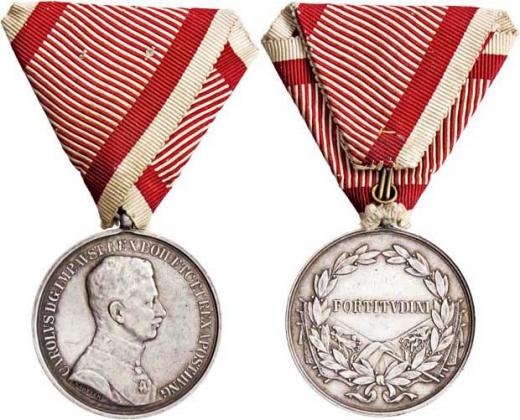 Velká stříbrná medaile za statečnost, Marko.234a, VM1.5-XII-C, Sign.Kautsch, Punc."A", vydání z let 1917 - 1918, škr., dr.rysky, původní stuha, téměř