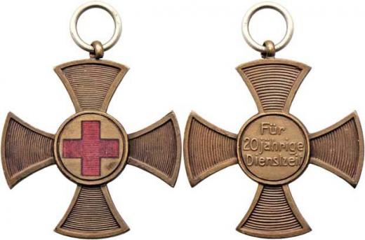 Bavorský Červený kříž - kříž za 20 let služby - část. smaltovaný bronz 34mm, podobný jako BB.59, v reversu 3-řádkový nápis, bez stuhy