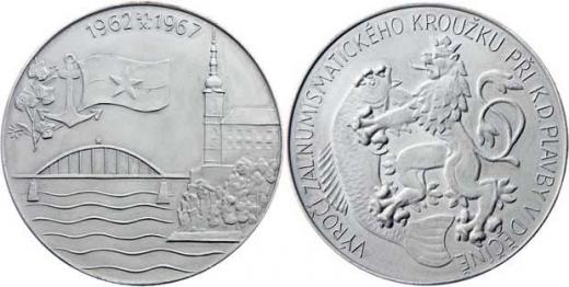 Dluhoš a Karel - 5 let numismatického kroužku 1967 - most přes Labe, zámek, emblém, opis/znak města, opis, hliník 52mm, BK.9/1A (pouze 10ks), patina, téměř RRR!