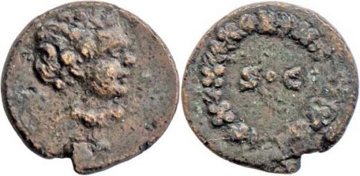 AE Quadrans, hlava mladého Baccha zprava / velké "SC" ve věnci, S.neuv., RIC.II.str.219-34 - mincovna Řím - ražba z let cca 120 - 150, nep.nedor., patina R!