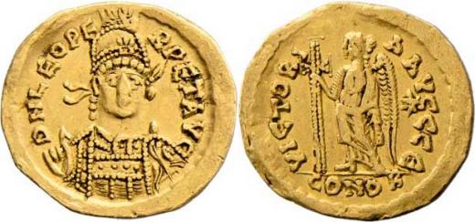 Solidus, Rv:"VICTORIA.AVGGG." stojící Victoria s velkým křížem, v pravém poli hvězda, S.4233, RIC.605 - Constantinopolis - 5.dílna, 4.335g, patina