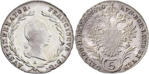 5 Krejcar 1820 A, 2.257g, mírně just., patina R!