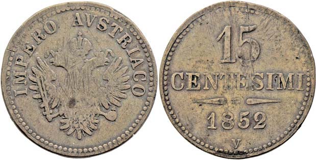 15 Centesimi 1852 V, 15.595g, hr., škr., rysky, dr.vady materiálu, patina RR!