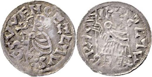 Denár, Ca.316, F.VIII/1 (711) - žerď praporce mezi písmeny "B" a "R" 1.005g, nep.nedor., pěkná patina