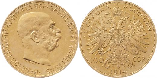 100 Koruna 1914 (pouze 1.195 ks), 33.879g, nep.rysky, patina RR!