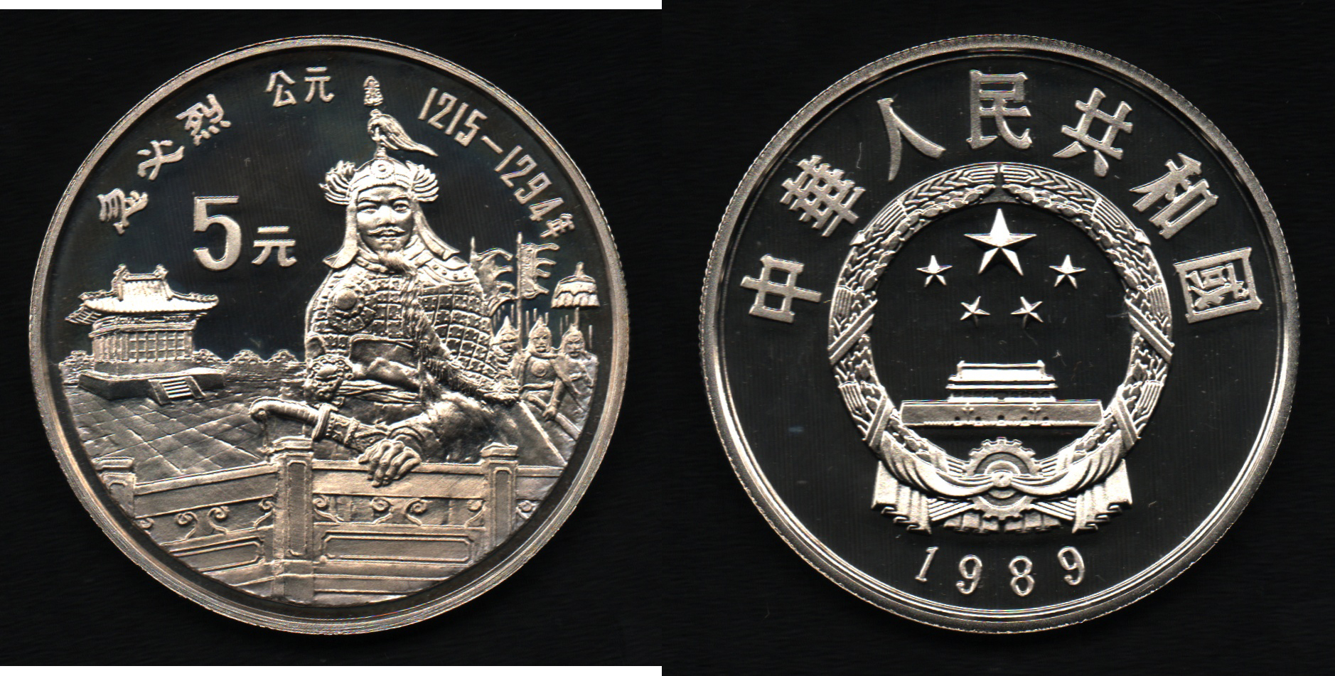 5 Yuan 1989 - Kublaj Chán, Y.213 (pouze 10.000 ks), kapsle