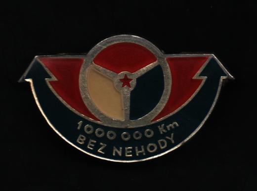 Jezdím bez nehody - 1.000.000 km, Sign. Kremnica, smaltov. punc. Ag900, 41x25 mm se zavír. špendlíkem