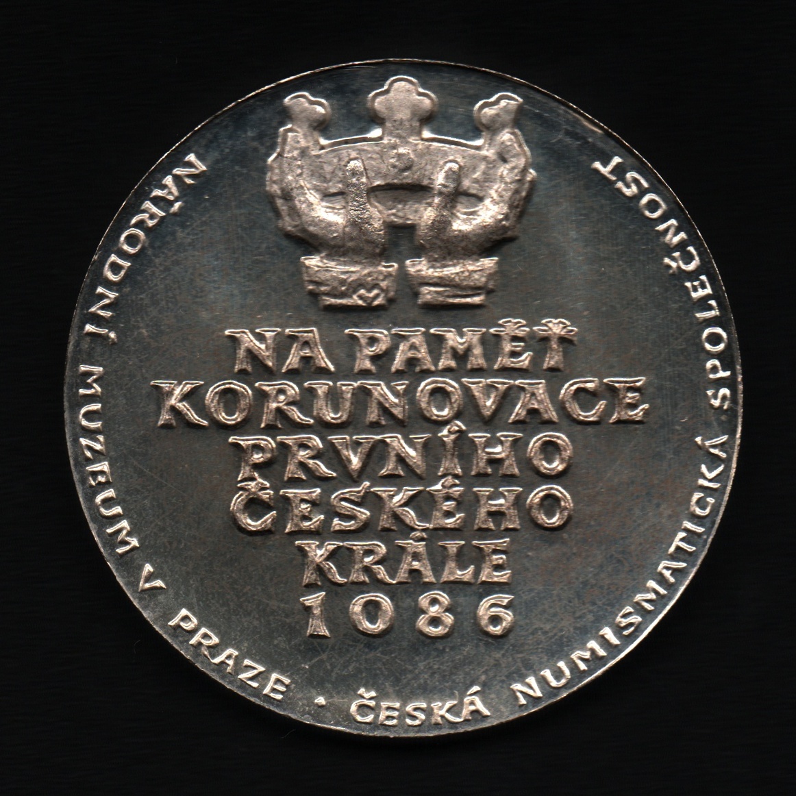 Vitanovský - 900 let korunovace Vratislava II. 1986 - hlava zprava, opis / ruce držící korunu, 6-řádk.nápis a opis, Sign., postříbřený bronz 42 mm, BK.27
