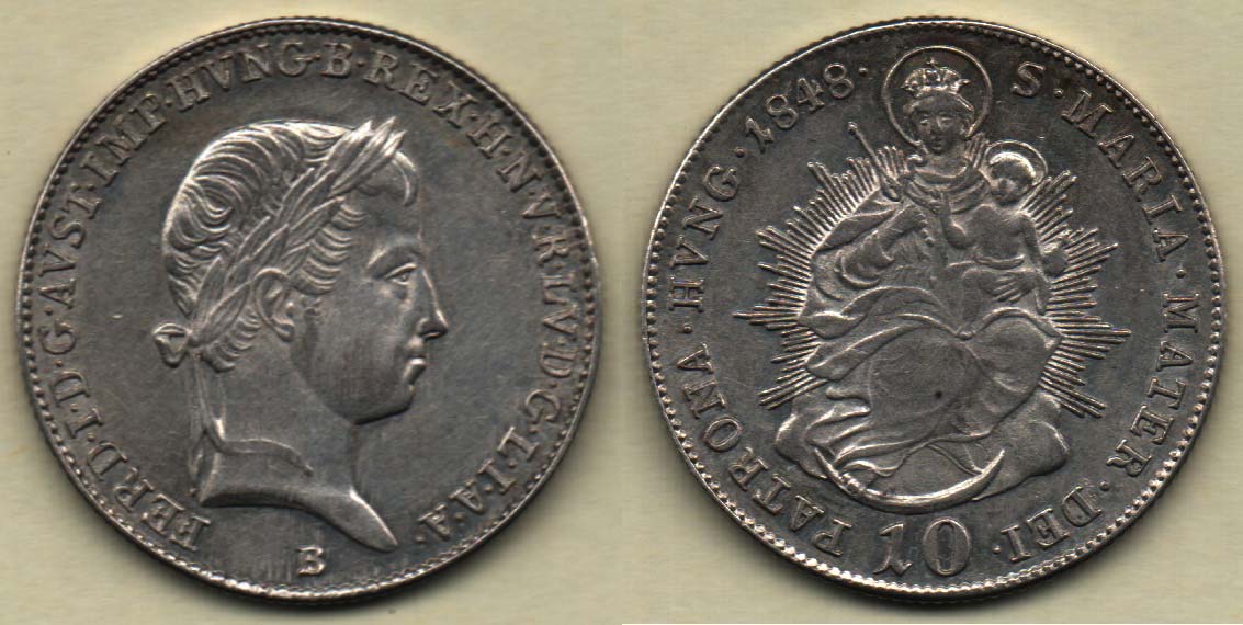 10 Krejcar 1848 B - latinský opis, 3.858g, mírně just., nep.hr., nep.rysky, pěkná patina