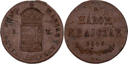 3 Krejcar 1849 NB, 26.075g, dr.vady materiálu, pěkná patina
