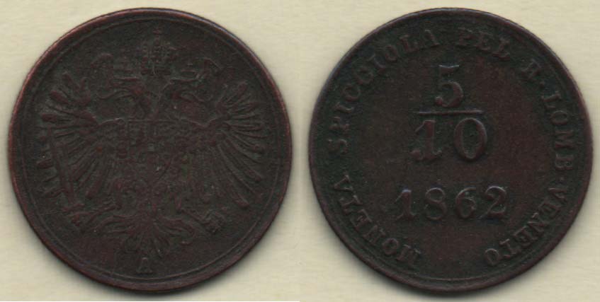 5/10 Soldo 1862 A, 1.822g, patina R!