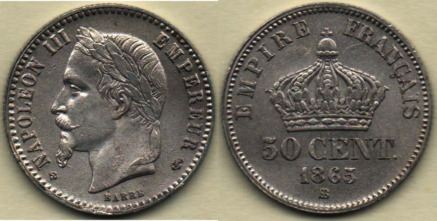 50 Centimes 1865 BB, Strasbourgh, KM.814.2, 2.487g, nep.hr., nep.rysky