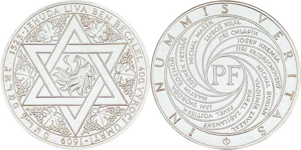 PF 2009 - Davidova hvězda, lví hlava, hrozny révy, opis / v paprscích jména vydavatelů, velké "PF" a opis, Sign., Ag925, 30mm, 13.464g R!
