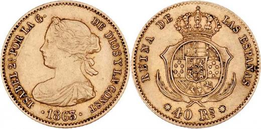 40 Reales 1863, Barcelona (8-hroté hvězdy), KM.616.1, 3.410g, nep.hr., nep.rysky, pěkná patina