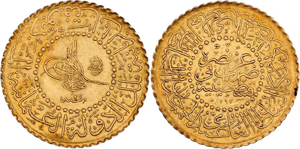 25 Piastr de Luxe, AH.1293, 27.rok vlády (= 1901), KM.739, 1.748g, nep.hr., nep.rysky, pěkná patina R!
