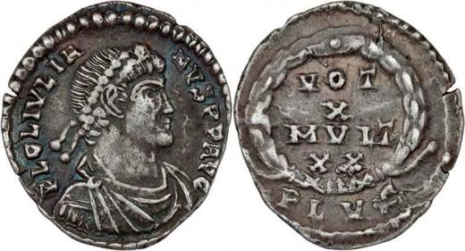 AR Siliqua, Rv:"VOT.X.MVLT.XX.", S.3970, RIC.233 - Lugdunum - 1.dílna - ražba z let 360 - 363, mírně exc., dr.vady razidla, nep.nedor., pěkná patina R!