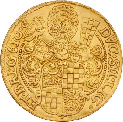 5 Dukát (1)610 CT, Sa.92 (pod. jako obr.37), Fr.3151, 16.918g, zvlněný, hlazený v ploše, malá sběratelská značka vyražená v aversu, pěkná patina RR!