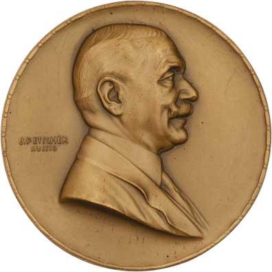 Ignaz Petschek - na návrat všech 4 synů ze svět.války 1920 - poprsí zprava, nápis / 16-řádkový nápis a faksimile podpisu, Sign., patinovaný bronz 60 mm