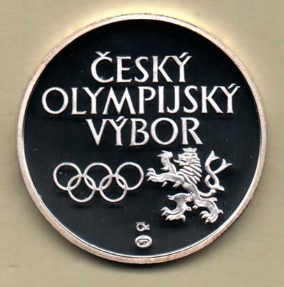 Český olympijský výbor - ZOH Nagano 1998 - český lev s olympijskými kruhy, nápis / emblém, hokejista, nápis, Sign., Ag900, 31mm, 13.114g, kapsle, etue