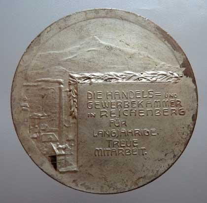 Neubauer - obchodní a živnostenská komora b.l.- kovář u kovadliny, vavříny, přístav/ město, vavříny, nápis, Sign., postříbřený bronz 60 mm, dr.hr., téměř