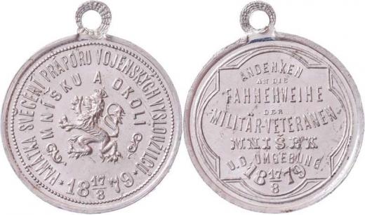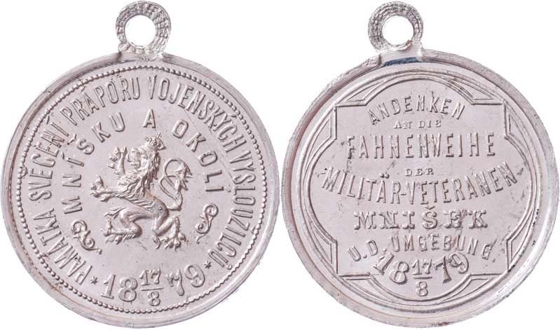 Mníšek a okolí 1879 - svěcení praporu 17.8., Nesign., cín 32 mm s původním raženým ouškem, Indra.str.44, nep.hr., nep.rysky, téměř