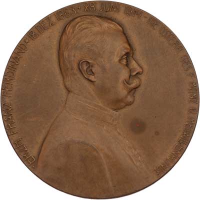 Hartig - AE jednostranná úmrtní medaile spolku přátel mincí a medailí 28.6.1914 - poprsí zprava, opis, Sign., patinovaný bronz 40 mm
