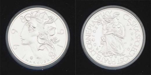 ČSPDP - 80 let vzniku Československa 1998 - stylizov. hlava Republiky, opis / sedící postava a dvojitý opis, Sign., Ag 40mm, 37.244g, kapsle, původní etue