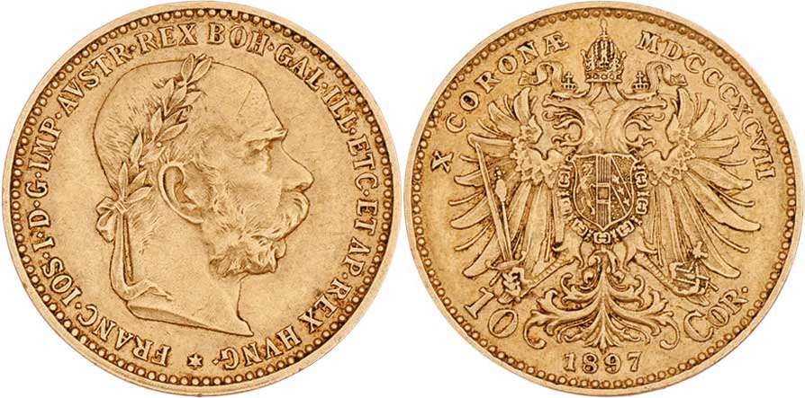10 Koruna 1897, 3.360g, nep.hr., nep.rysky, pěkná patina