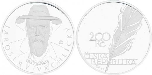 200 Kč 2003 - Jaroslav Vrchlický, KM.60 (Ag900, 13.0g, 3.692g), kapsle, etue, nep.pomačkaná karta