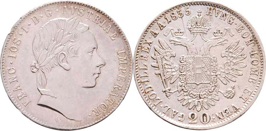 20 Krejcar 1855 C, 4.326g, dr.vada razidla, dr.hr., nep.rysky, pěkná patina, téměř R!