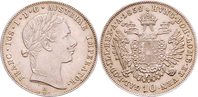 10 Krejcar 1852 A, 2.154g, nep.hr., nep.rysky, pěkná patina, téměř RR!