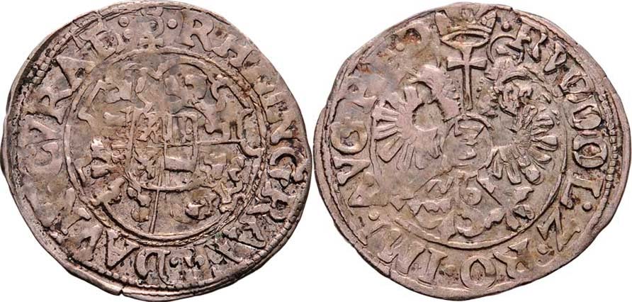 3 Krejcar b.l. - s titulem Rudolfa II., Sa.2106 (podobný jako obr. 1033), 1.767g, nedor., patina