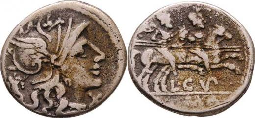 AR Denár, Hlava Romy zprava, značka "X" / Dioscuriové na koních doprava, náp."L.CVP.ROMA.", Crawford.218/1, Seaby.Cupiennia,1, Alb.866, nedor., patina