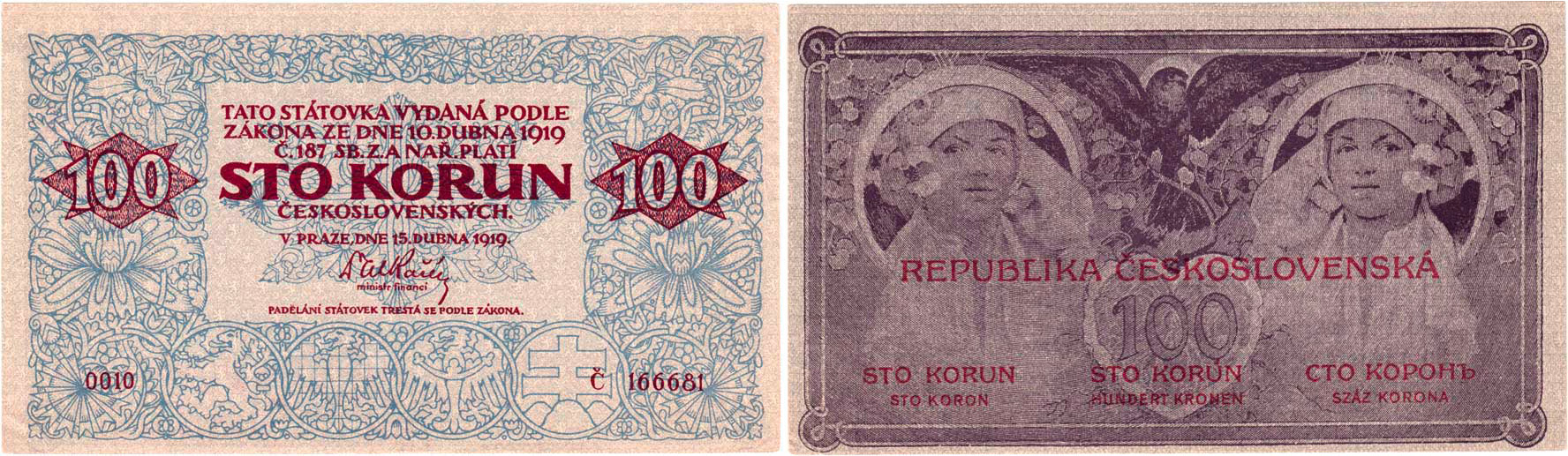 100 Koruna 1919, série 0010, BHK.12 - dobové falzum - bez vodotisku - dle evidence ČNB padělek typu 7