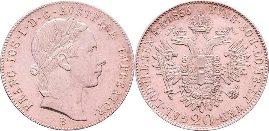 20 Krejcar 1856 B, 4.310g, nep.hr., dr.rysky, patina