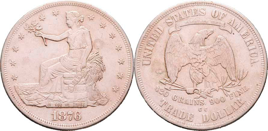 Obchodní dolar 1876 CC, KM.108 (Ag900), 27.012g, nep.hr., nep.rysky, skvrnky, patina R!