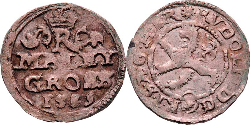 Malý groš 1589, K.Hora-Šatný, HN.1b (opis 7a), nápis " MALEY / GROSS / 1589 ", 1.088g, nep.nedor., patina