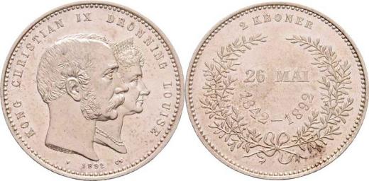 2 Koruna 1892 CS - zlatá svatba, KM.800 (Ag800, pouze 101.000 ks), 14.976g, nep.hr., nep.rysky R!