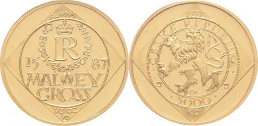 5000 Koruna 1997 - české mince - Malý groš, KM.20 (Au999, 15.55g, pouze 1.500 ks), kapsle, etue