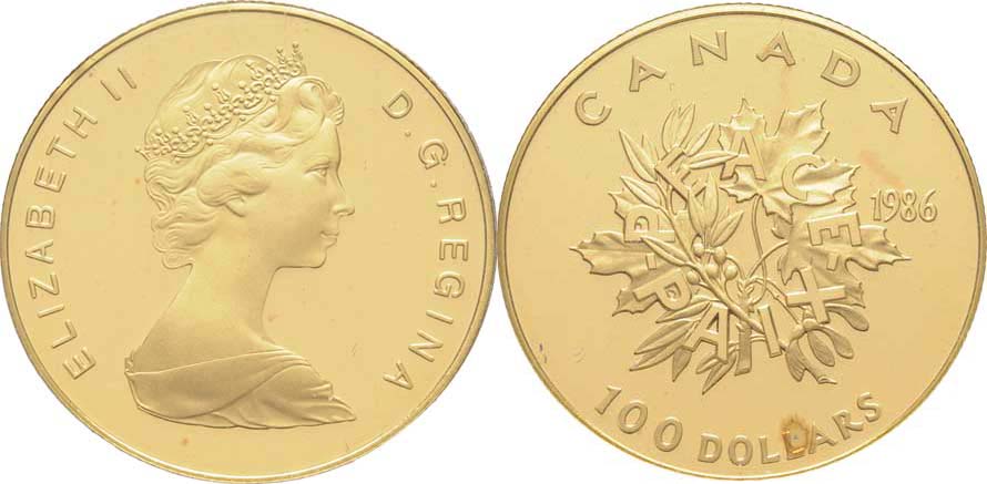 100 Dolar 1986 - mírový, KM.152 (Au917, 16.95g, pouze 76.409 ks), skvrnky, kapsle