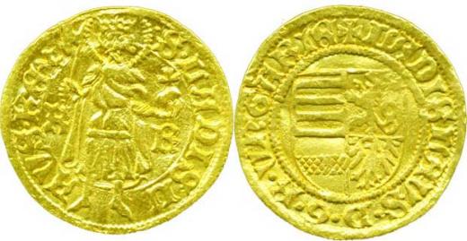 Dukát b.l., Stojící Sv.Ladislav, opis / čtyřdílný znak, opis, zn."K-R", Husz.637, Un.508, Le.30/4