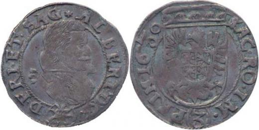 3 Krejcar 1630, Jičín-Reick, Nech.66pod., Pol.234pod. v av. opis končí SAG._R!