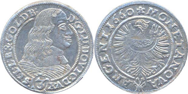3 Krejcar 1665, Neuburg am Inn-Triangel, Nech.-, Her.1572vv opis: D.G.R.- I.S._R!