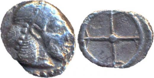 AR Obol, hlava Artemis zprava / kříž, jako SGI.917, 10 mm, 0.65 g