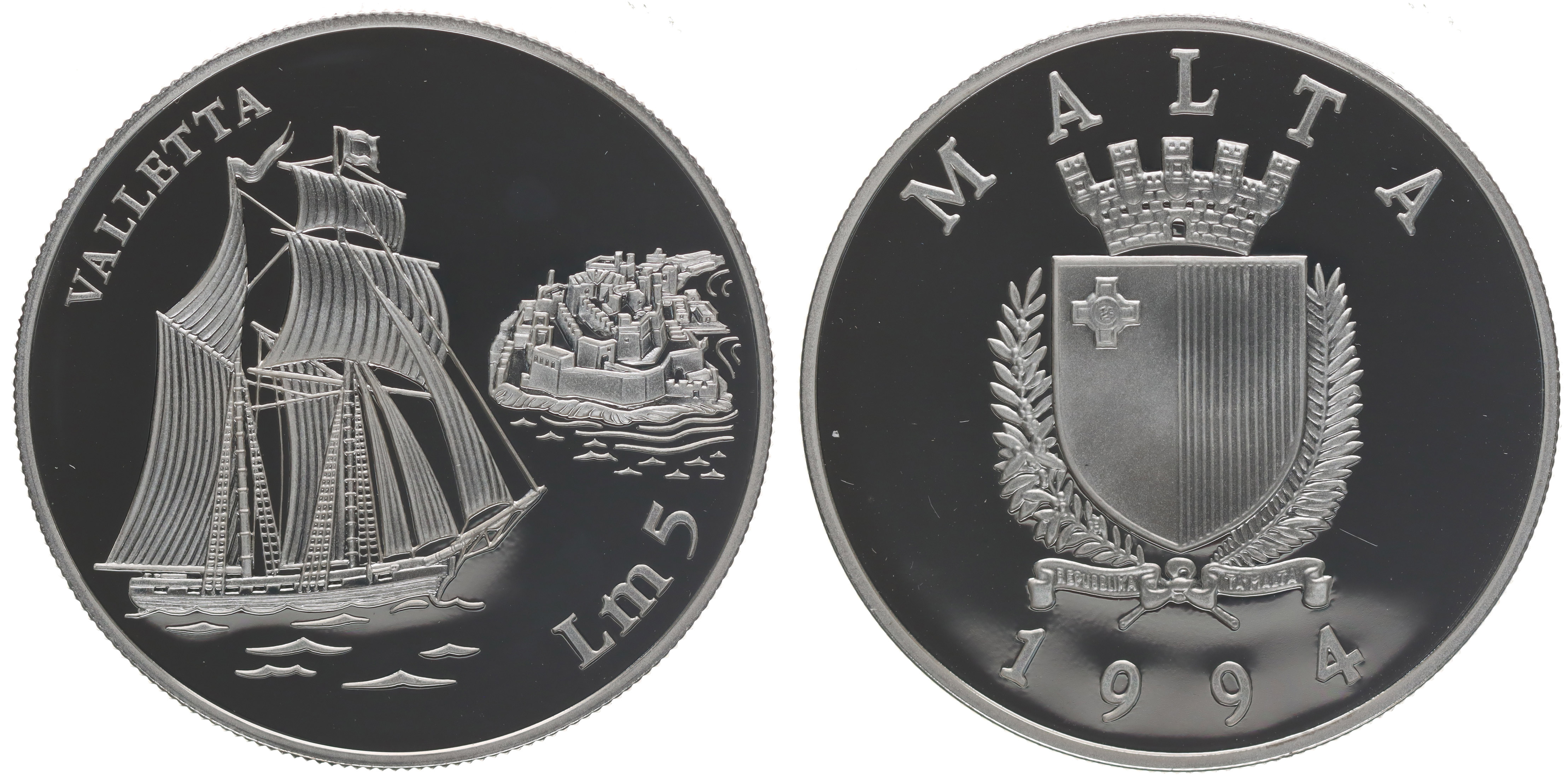 5 Libra 1994 - loď Valetta, Ag 39 mm, 25 g, KM.108_orig.kapsle
