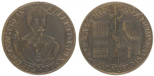 Z.Kolářský - 15 let pobočky ČNS v Chebu, 1984 Poprsí vévody čelně, opis / chebské historické budovy, opis Bronz 60 mm, 101,6 g, náklad.300 ks, MF.A11/11a