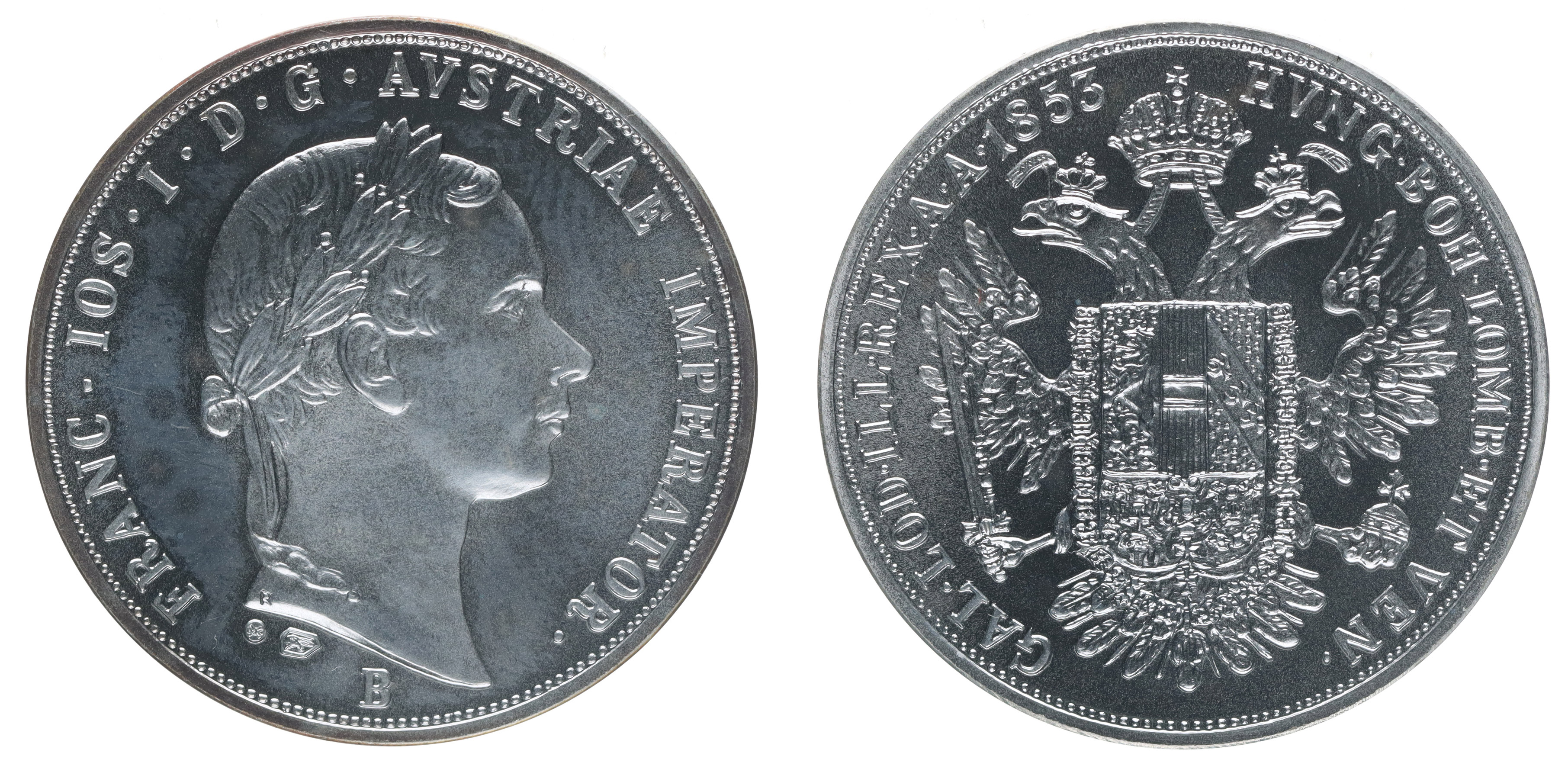 1/2 Tolar 1853 B - oficiální novoražba Ag 900/1000, 30 mm, 13,2 g vydala minc.Kremnica, nákl.200 ks_orig.kapsle + dřev.etue + certifikát