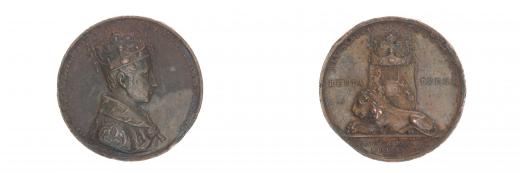 Boehm - medaile na korunovaci v Praze, 7.9.1836#Br Poprsí zprava, opis / ležící lev, korunovaný český znak, 2řádk.nápis v úseči, opis, Cu 47 mm, 80,29 g, Nov.XVIII/D-1c, ČS.1493, P.III/3 _čet.hry, st.koroze